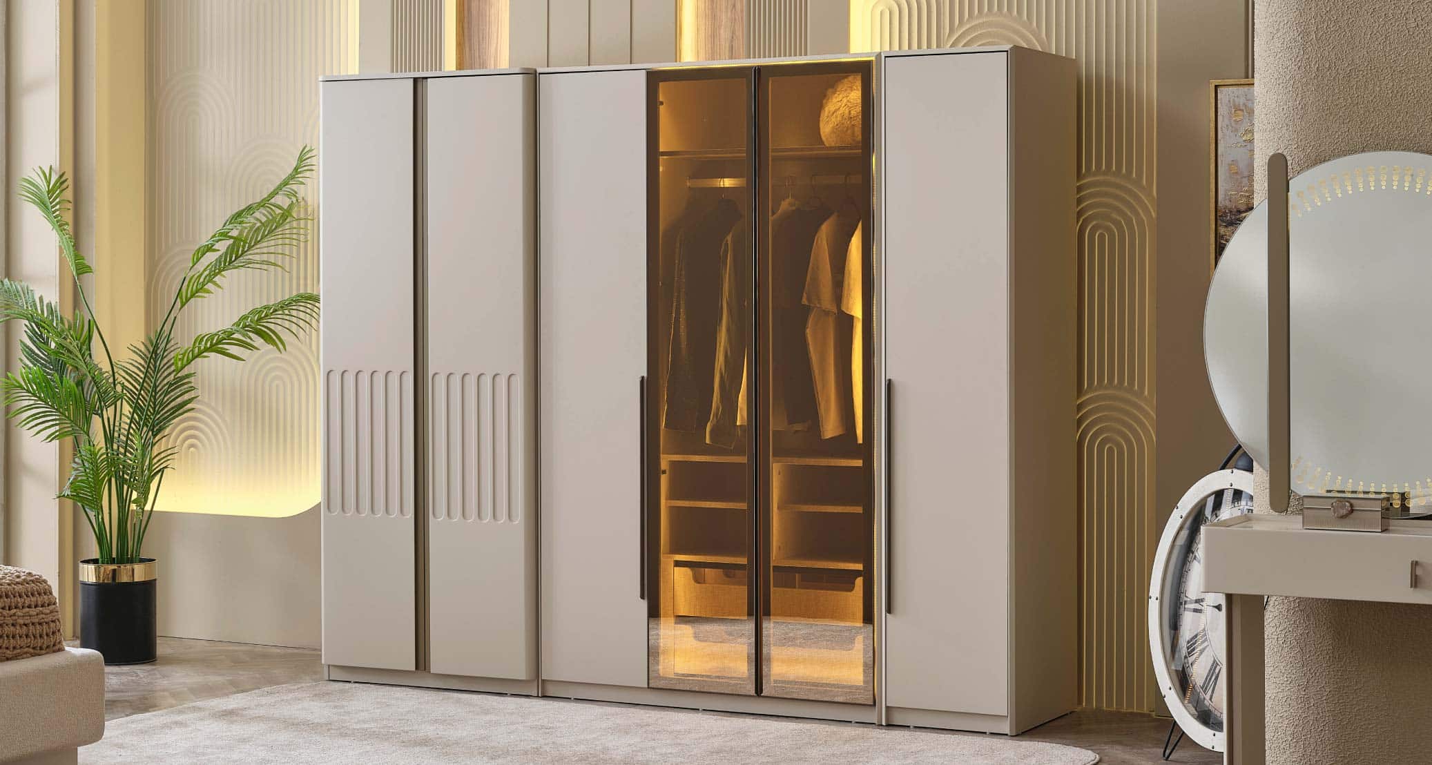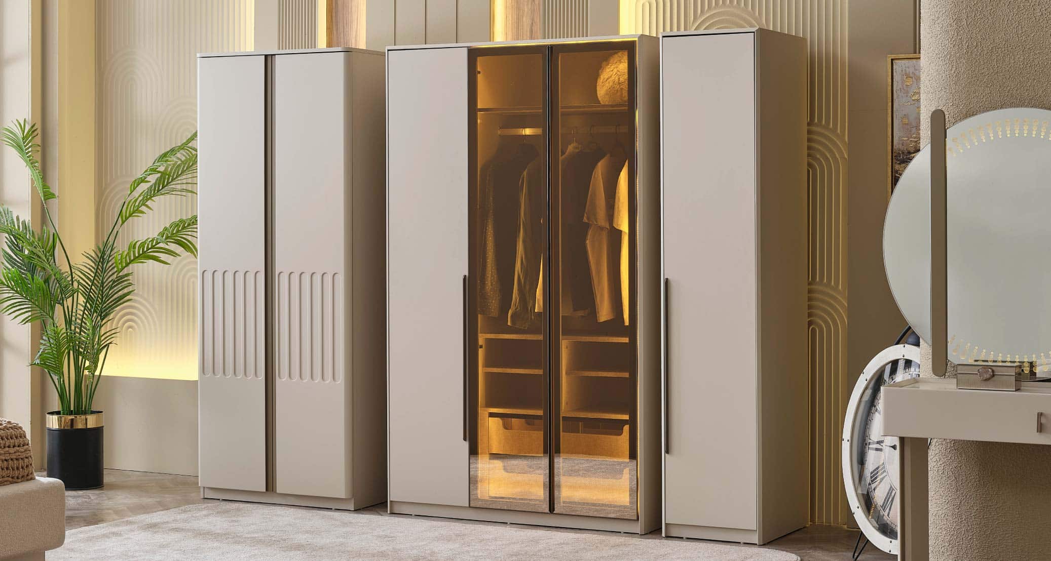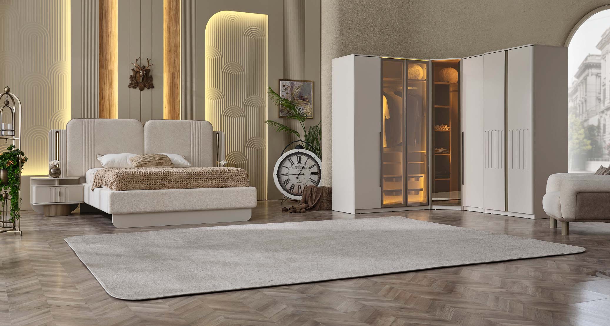 The Verona Bedroom Set brings a sophisticated touch to your bedroom with its elegant design and functional features. Crafted from high-quality materials, it offers both durability and style. A spacious wardrobe, a comfortable headboard, and practical nightstands provide both organization and aesthetic harmony. With its natural color tones and modern lines, it creates a serene and inviting sleeping environment. The Verona Bedroom Set is the perfect choice for those seeking both style and comfort.
